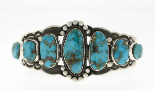 Natural Kingman Turquoise 7-Stone Row Bracelet
