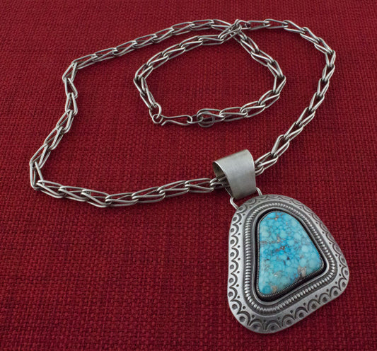 Handmade Sterling Silver Chain Link Necklace With Natural Birdseye Turquoise Pendant