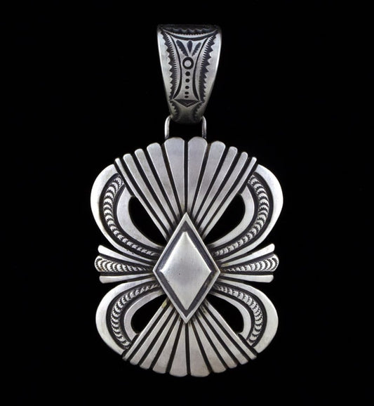 Calvin Martinez was born in 1960 and has been an active silversmith and jewelry designer for over 30 years. He is mostly self-taught, but learned the basics of silversmithing from his parents. Martinez prides himself on only using the highest quality stones and sterling silver in his work. His pieces are made using traditional Navajo silversmithing techniques, which is why his style is commonly referred to as “traditional revival.”