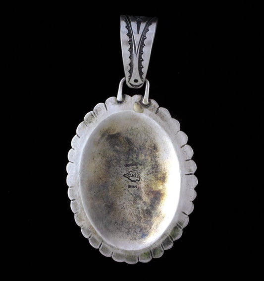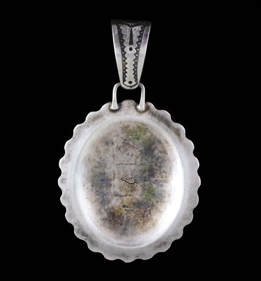 Calvin Martinez stamps the back of each piece he makes with a distinctive hallmark. Regardless of the vendor, genuine pieces by Calvin Martinez are hallmarked.
