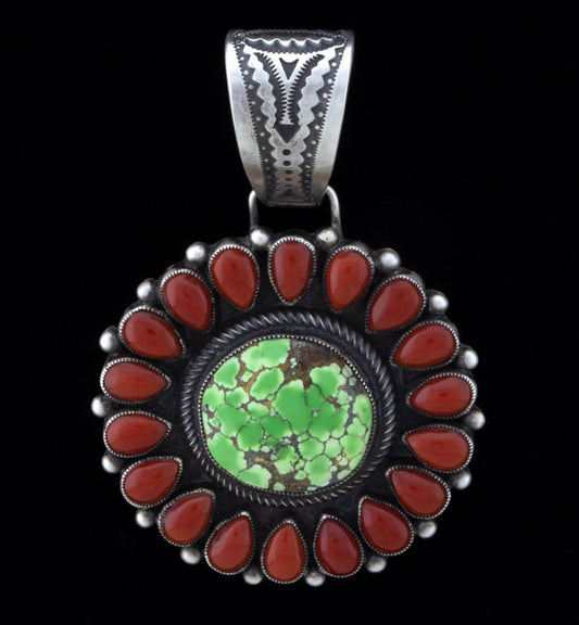 Natural Carico Lake Turquoise Pendant With Coral Surround