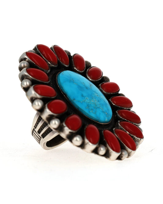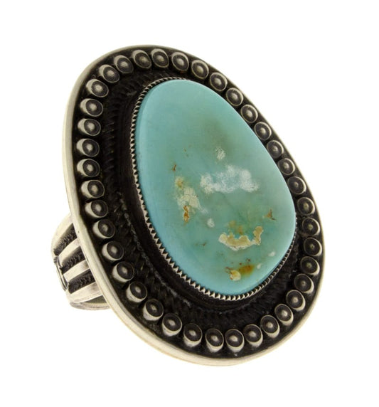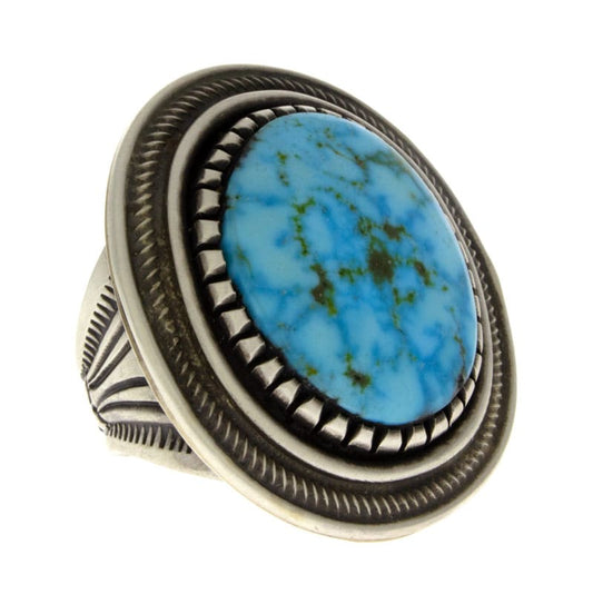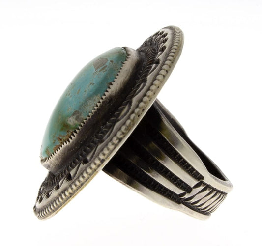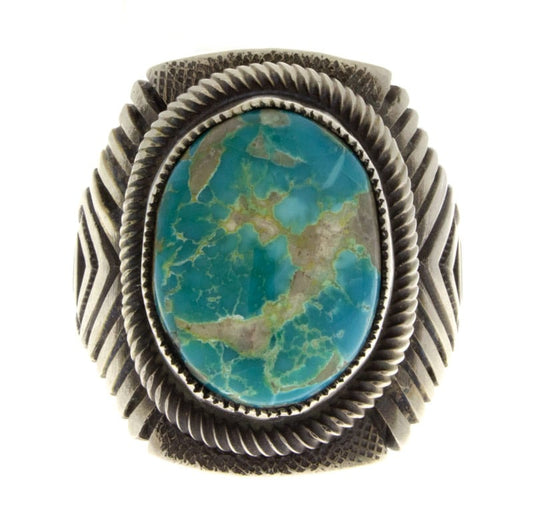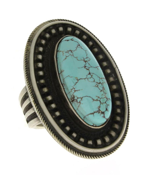 We are honored to feature Calvin Martinez’s work in our curated ring collection. These rings showcase bold stone clusters, intricate patterns, and striking oxidized backgrounds. The main types of turquoise set in his rings are Royston and Kingman.