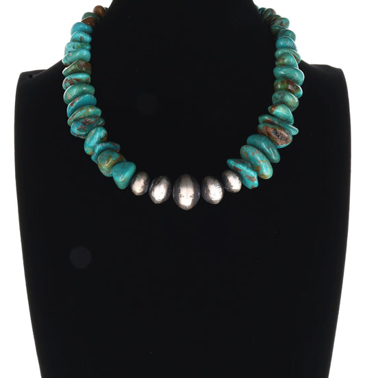 Campitos Turquoise Nugget & Sterling Silver Bead Necklace