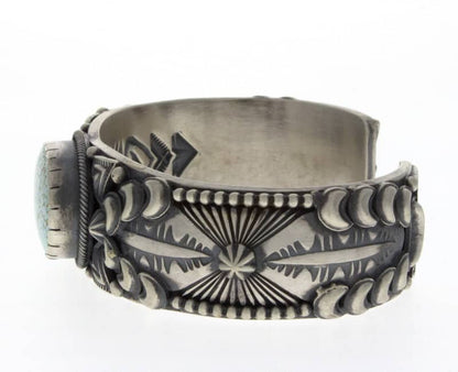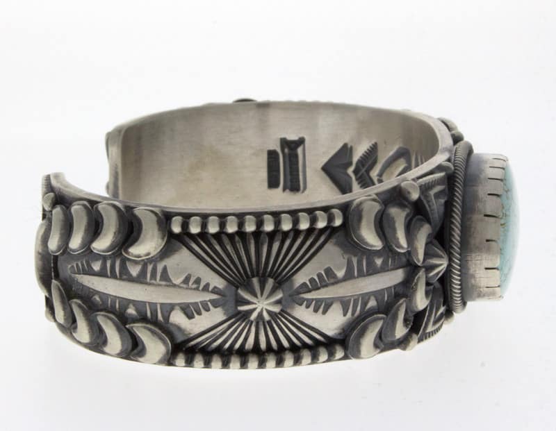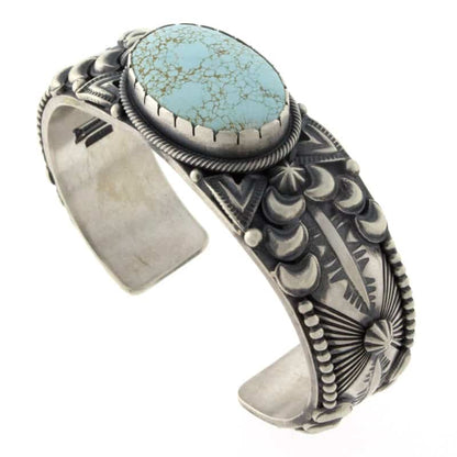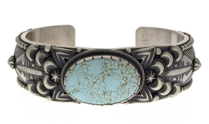 "Old Style" Sterling Silver Bracelet Set With A RARE Natural #8 Turquoise Stone.  Masterfully Handmade And Designed By Navajo Artist DERRICK GORDON.