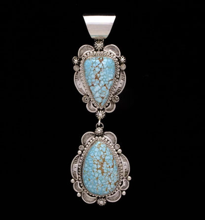 High Grade Natural #8 Web Turquoise Double-Stacked Pendant