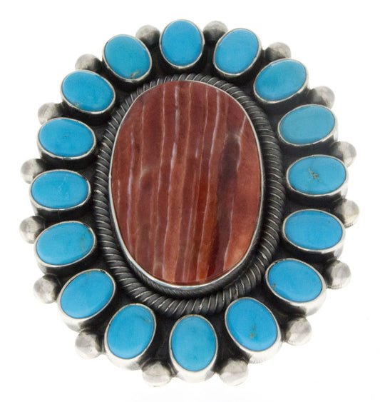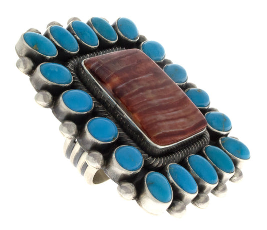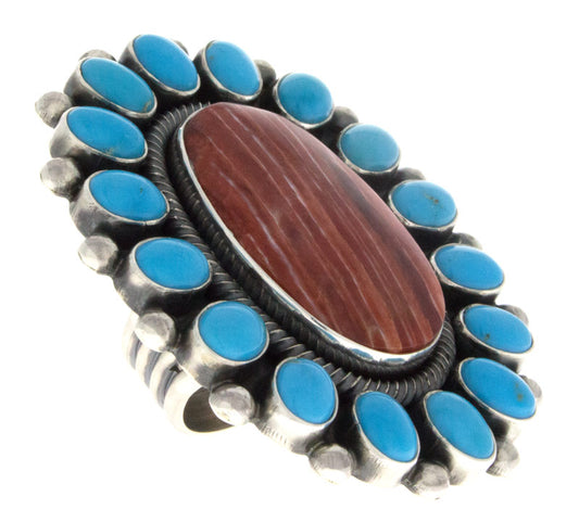 Red Spiny Oyster Statement Ring With Natural Sleeping Beauty Turquoise Surround