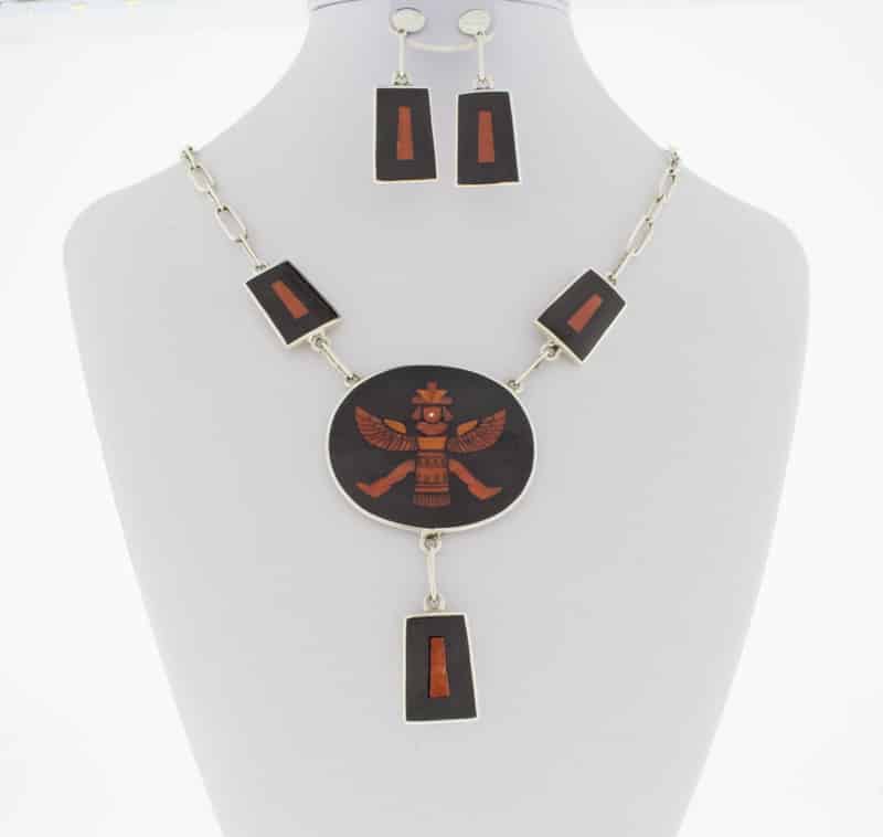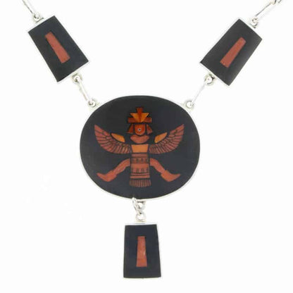 Handmade Jet & Coral Inlay "Knife Wing Dancer" Necklace With Matching Earrings
