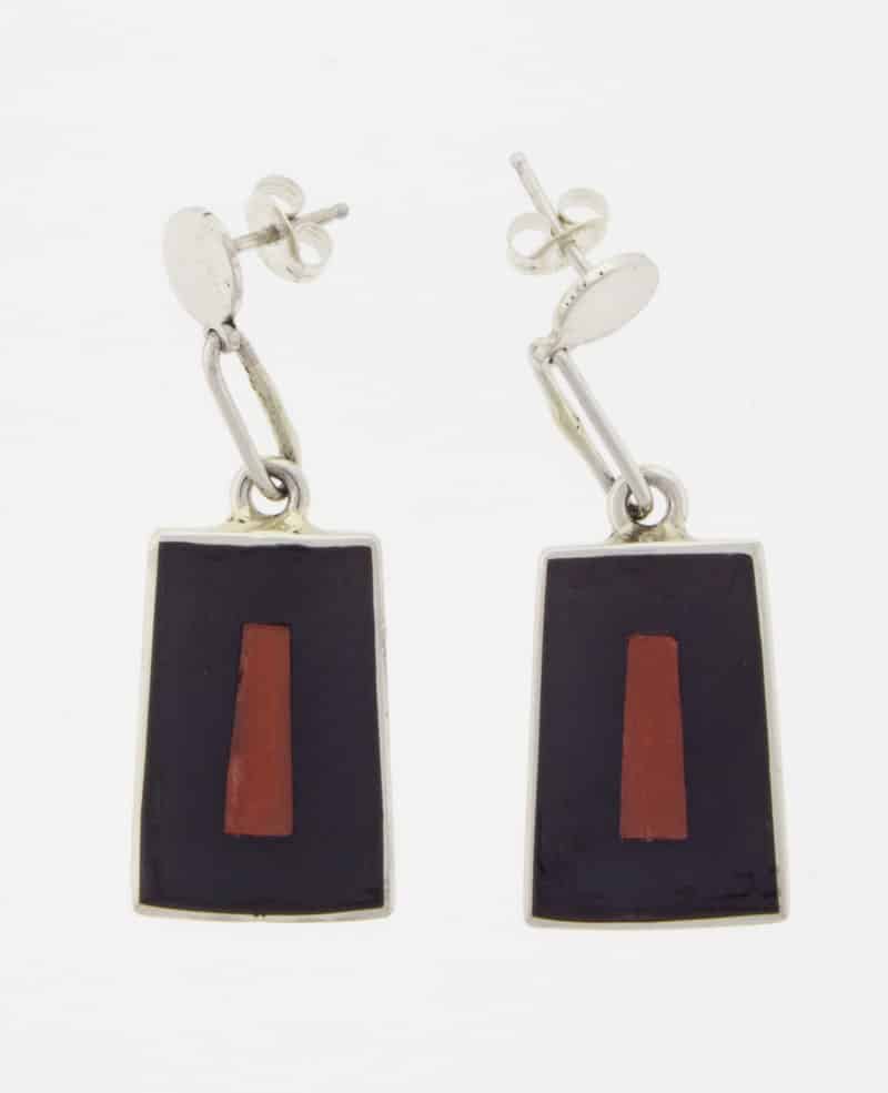• Materials/Technique:  Sterling Silver, Jet And Coral Stone On Stone Inlay