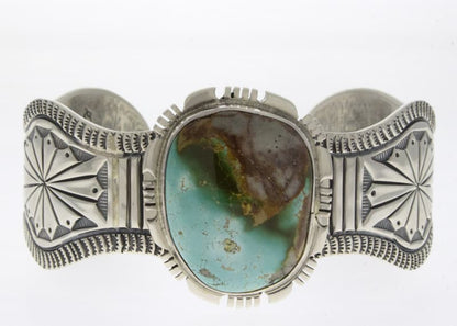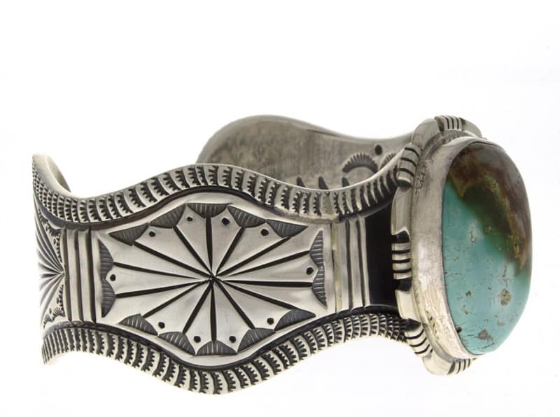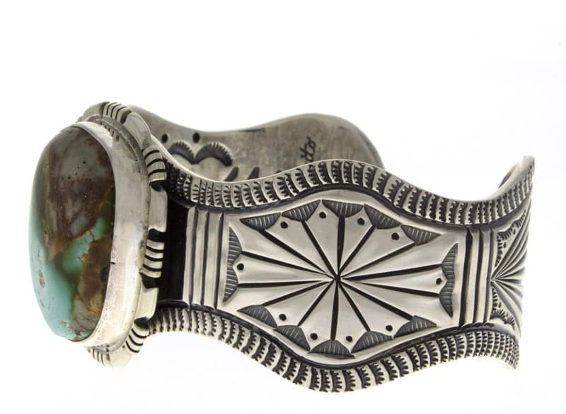 Sterling Silver Bracelet Set With A Royston Turquoise Stone.  Masterfully Handmade And Designed By Navajo Artist JEREME DELGARITO.