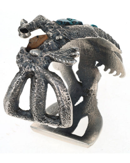 • Materials: Sterling Silver, Kingman Turquoise, Fossilized Ivory, Mediterranean Coral, Jet & Onyx