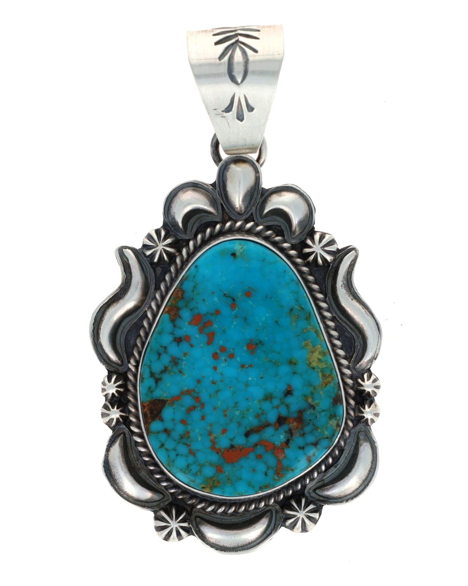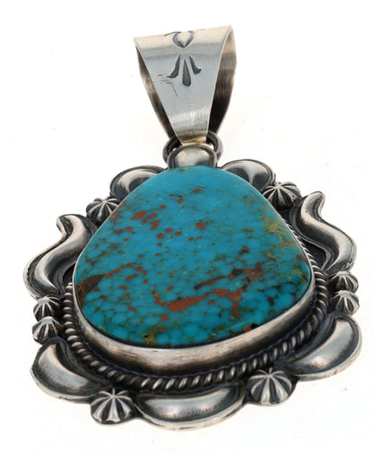 "Old Style" Sterling Silver Pendant Set With A Pear Shaped Natural Ithaca Peak Turquoise Stone.  Masterfully Handmade And Designed By Navajo Artist RAYMOND DELGARITO.