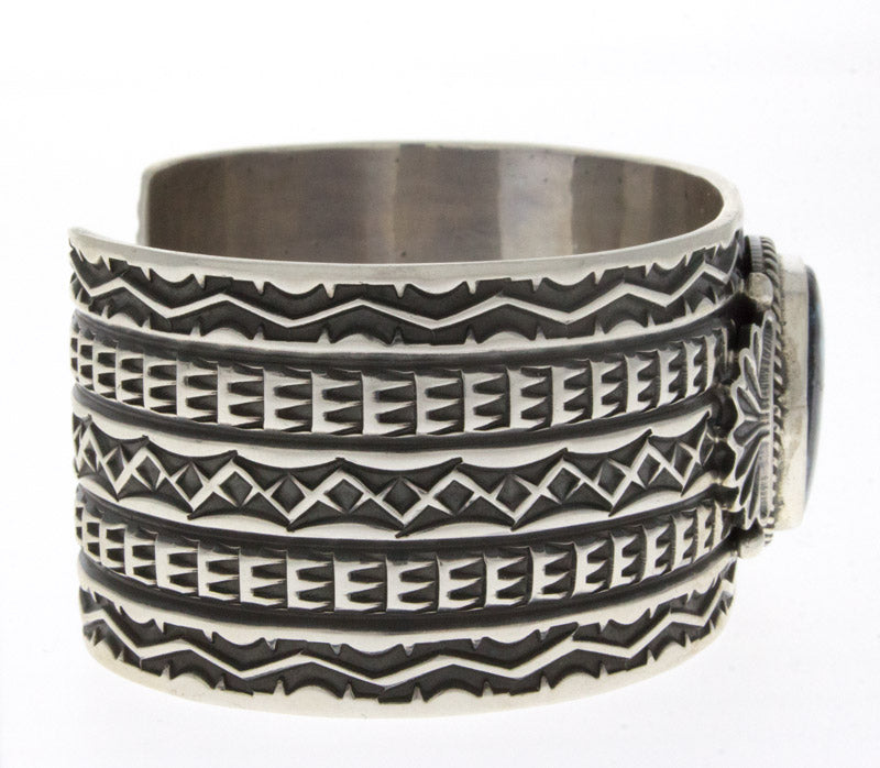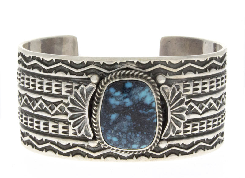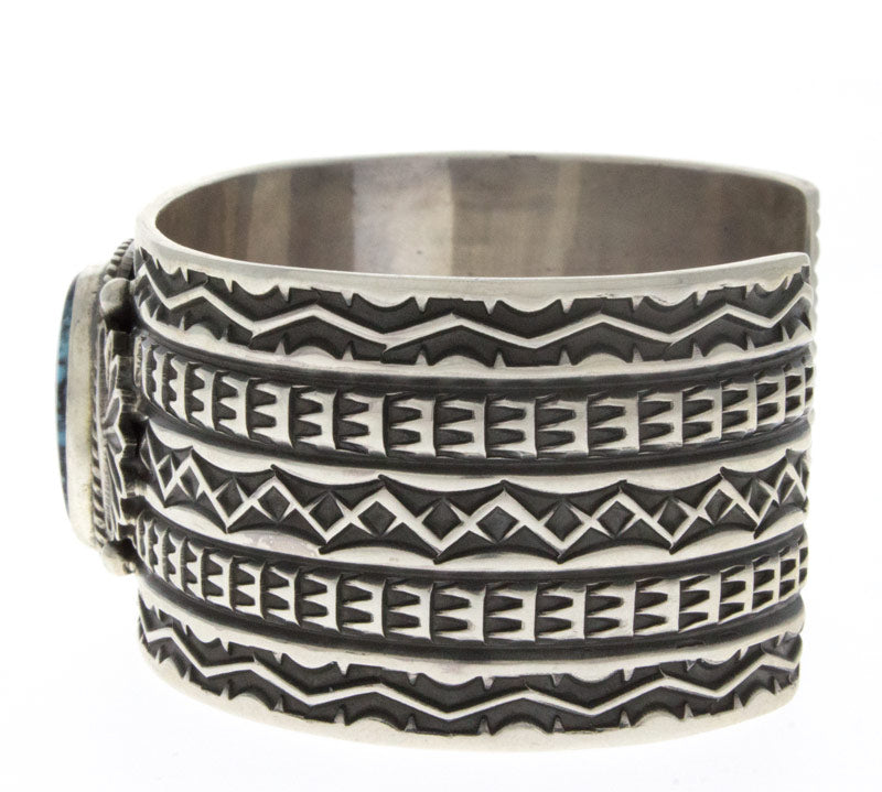 Sterling Silver Bracelet Set With A Natural China Mountain Turquoise Stone.  Masterfully Handmade And Designed By Navajo Artist SUNSHINE REEVES.