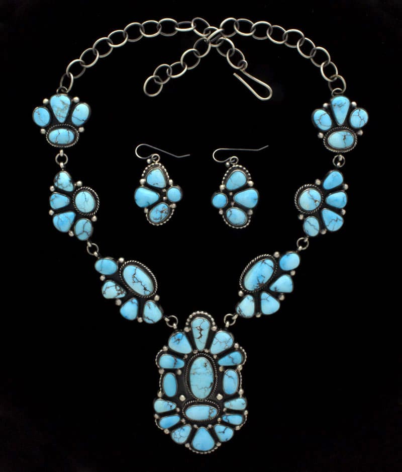 Natürliche ägyptische Türkis-Cluster-Halskette mit passenden Ohrringen
