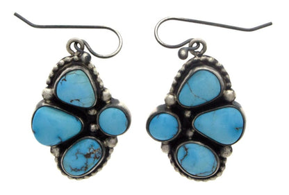 16,5"-21" verstellbare Länge "Old Style" Sterling Silber Gliederkette Halskette mit natürlichen ägyptischen Türkis-Clustertabs und Anhänger. Enthält passende Ohrringe im französischen Drahtstil. Halskette und Ohrringe meisterhaft handgefertigt und entworfen von der Navajo-Künstlerin ANGELA MARTIN.