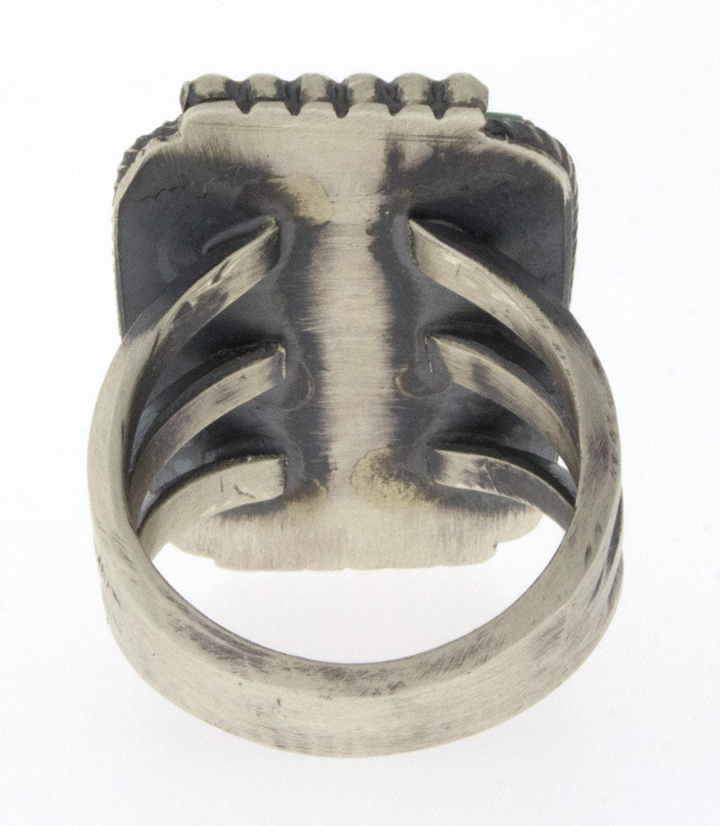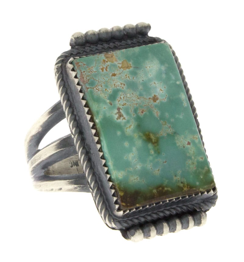Größe 7,75 "Old Style" Sterlingsilberring mit einem natürlichen Pilot Mountain Türkisstein. Meisterhaft handgefertigt und entworfen von dem Navajo-Künstler HENRY MORGAN.