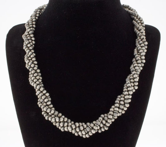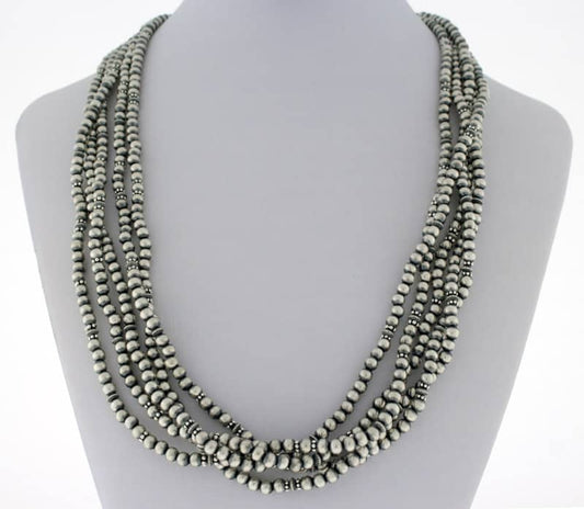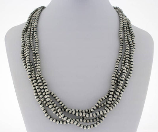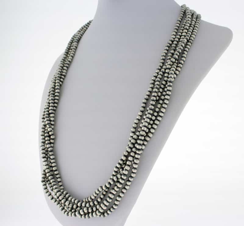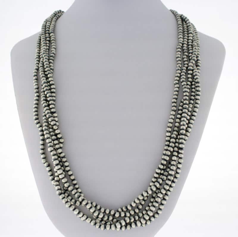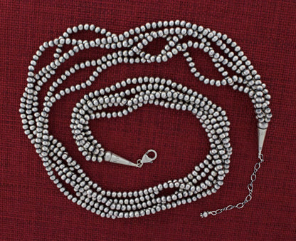 22,5"-24,75" verstellbare Länge 5-strängige "Old Style" Sterlingsilber 4 mm Perlenkette, fachmännisch handgefertigt von der Navajo-Künstlerin LULA NEZ.