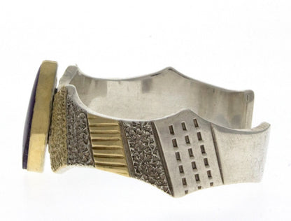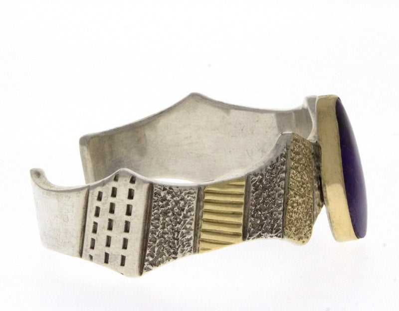 Unverwechselbares Armband-Set aus Sterlingsilber und 14 Karat Gold, besetzt mit einem natürlichen Sugilitstein. Meisterhaft handgefertigt und entworfen von dem Apache-Künstler MARC ANTIA.