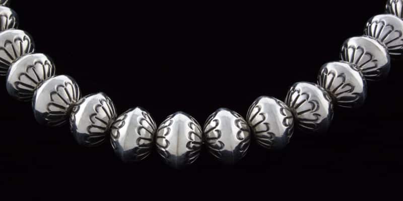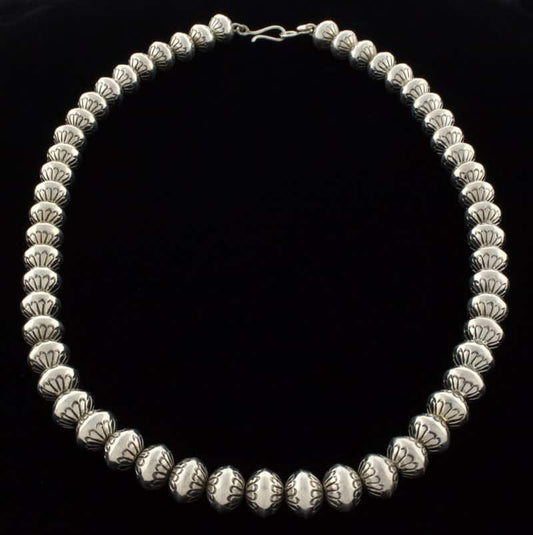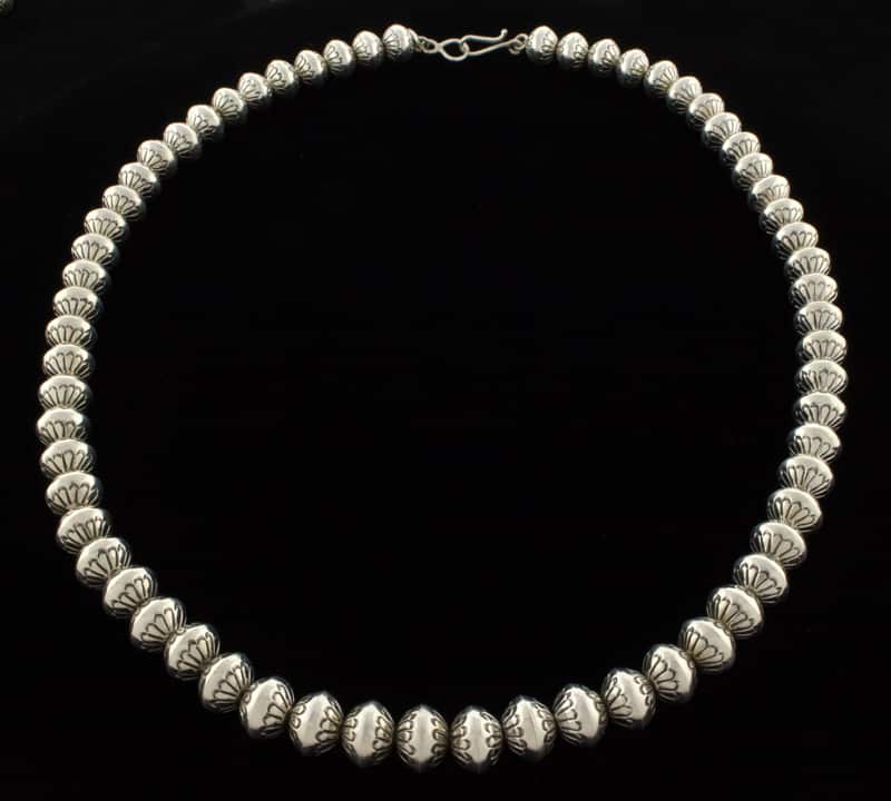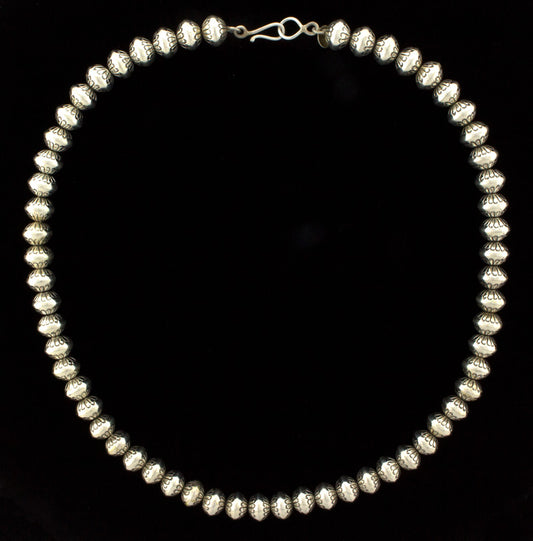 20" Länge Sterlingsilber 10,75 mm Perlenkette Meisterhaft handgefertigt und entworfen von der Navajo-Künstlerin MARIE YAZZIE.