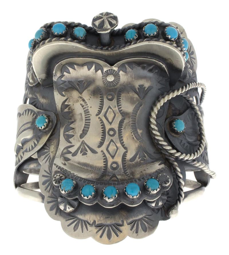 • Technique:  Stamp Work, Appliqué, Repoussé, Saw Work, Twist Wire, Satin Finish, Oxidized Background