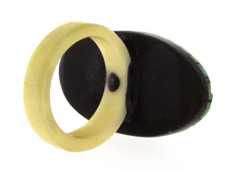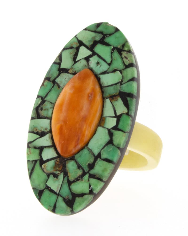 • Materials:  Sterling Silver, Elk Bone (ring shank), Orange Spiny Oyster, Natural Carico Lake Turquoise, Jet
