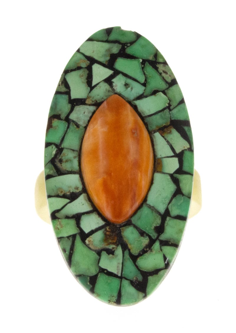 Elchgewebering mit orangefarbenem Stacheloyster und natürlichem Carico Lake Türkis-Einlageumrandung