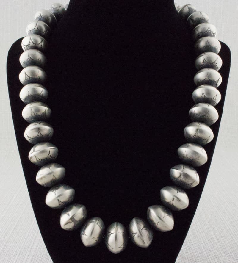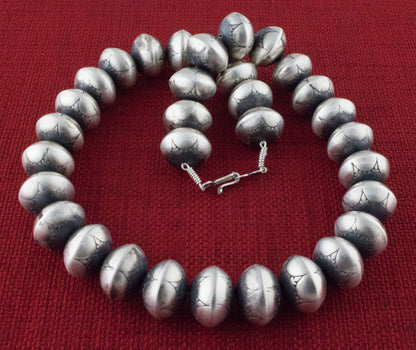 21" Länge "Old Style" Sterlingsilber Perlenkette Meisterhaft handgefertigt und entworfen von der verstorbenen Navajo-Künstlerin JAN MARIANO.