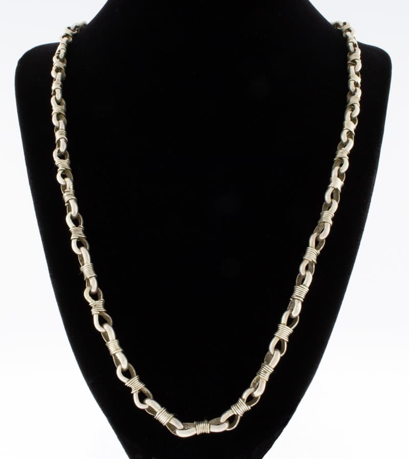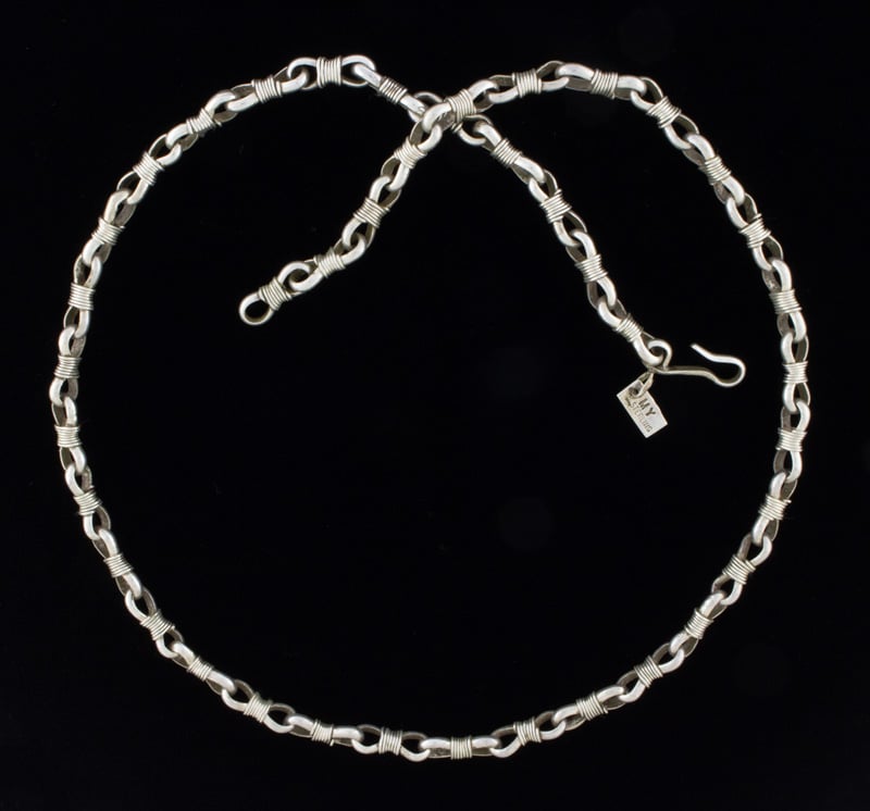 24,25" Länge Sterling Silber Umwickelter Draht Gliederkette Halskette Meisterhaft Handgefertigt Und Entworfen Vom Navajo-Künstler MARK YELLOWHORSE.