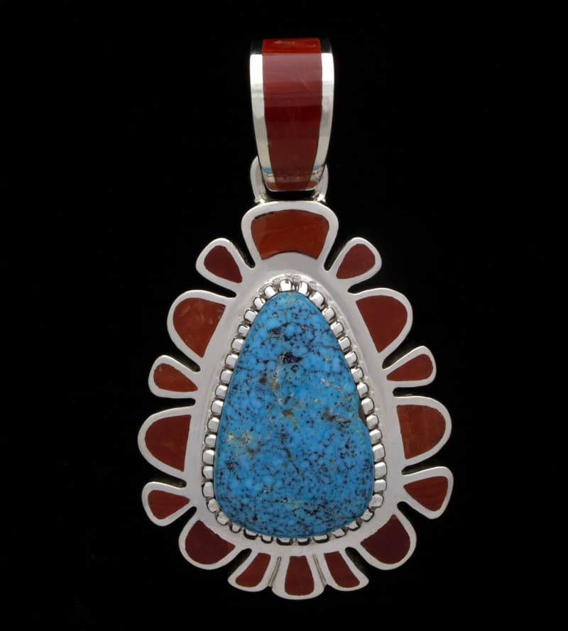 Hochwertiger natürlicher Kingman-Türkis mit Koralleninlay-Anhänger
