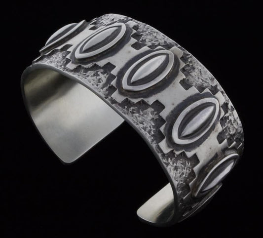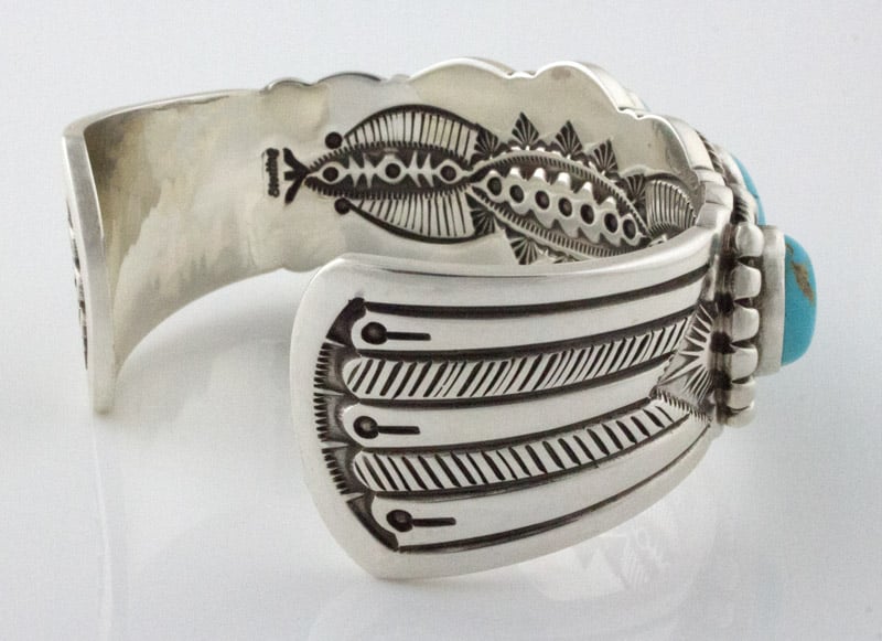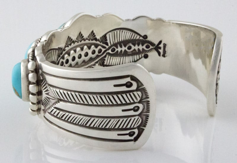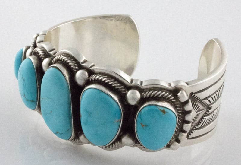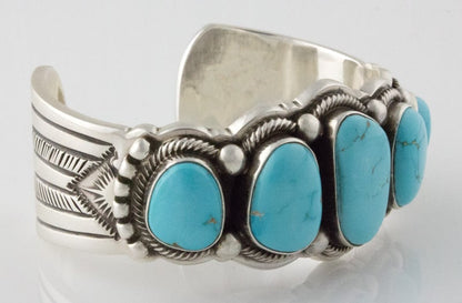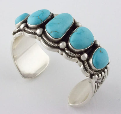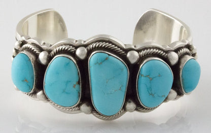 Sterling-Silber-Armband mit einer Reihe von 5 beeindruckenden hochwertigen natürlichen königsblauen Türkissteinen. Meisterhaft handgefertigt und entworfen von dem Navajo-Künstler TERRY MARTINEZ.