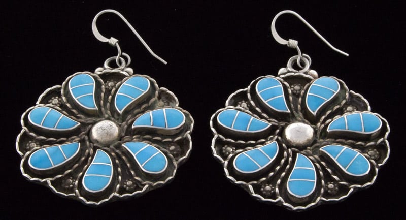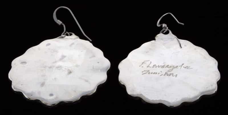 • Artist Hallmark:  "F. Lowsayatte, Zuni, NM" (lightly inscribed on back side of one earring)