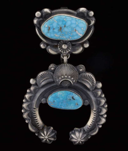 "Old Style" Sterlingsilber Naja Anhänger mit 2 natürlichen Kingman Türkissteinen. Meisterhaft handgefertigt und entworfen von dem Navajo-Künstler DELBERT GORDON.