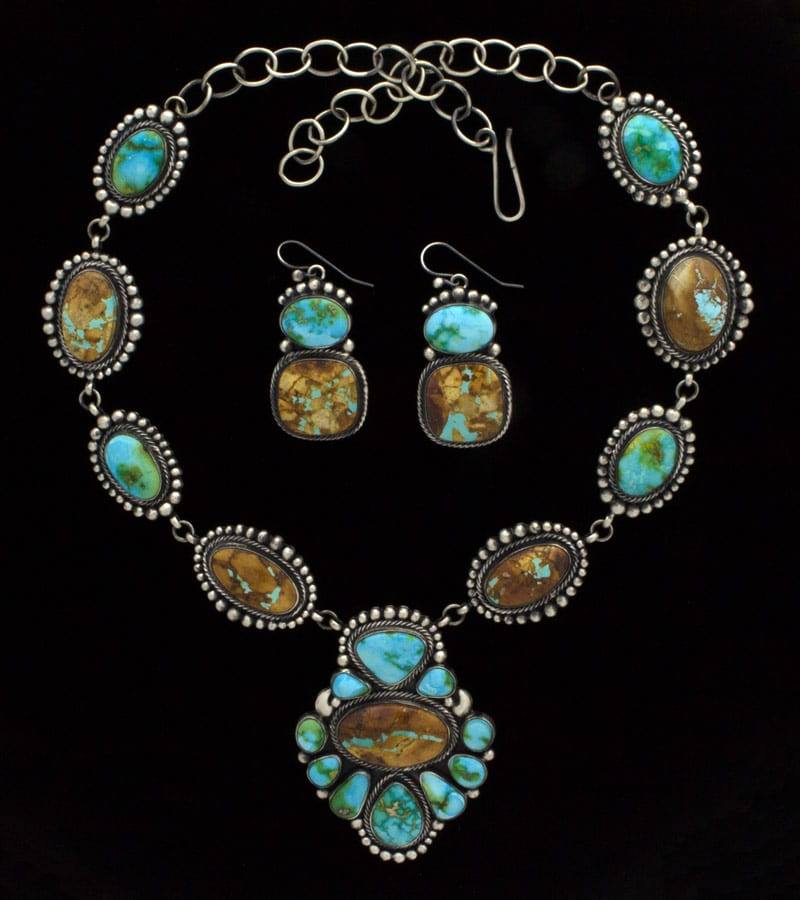 Natürliche Royston Boulder Türkis- und Sonoran Mountain Türkis-Halskette mit passenden Ohrringen