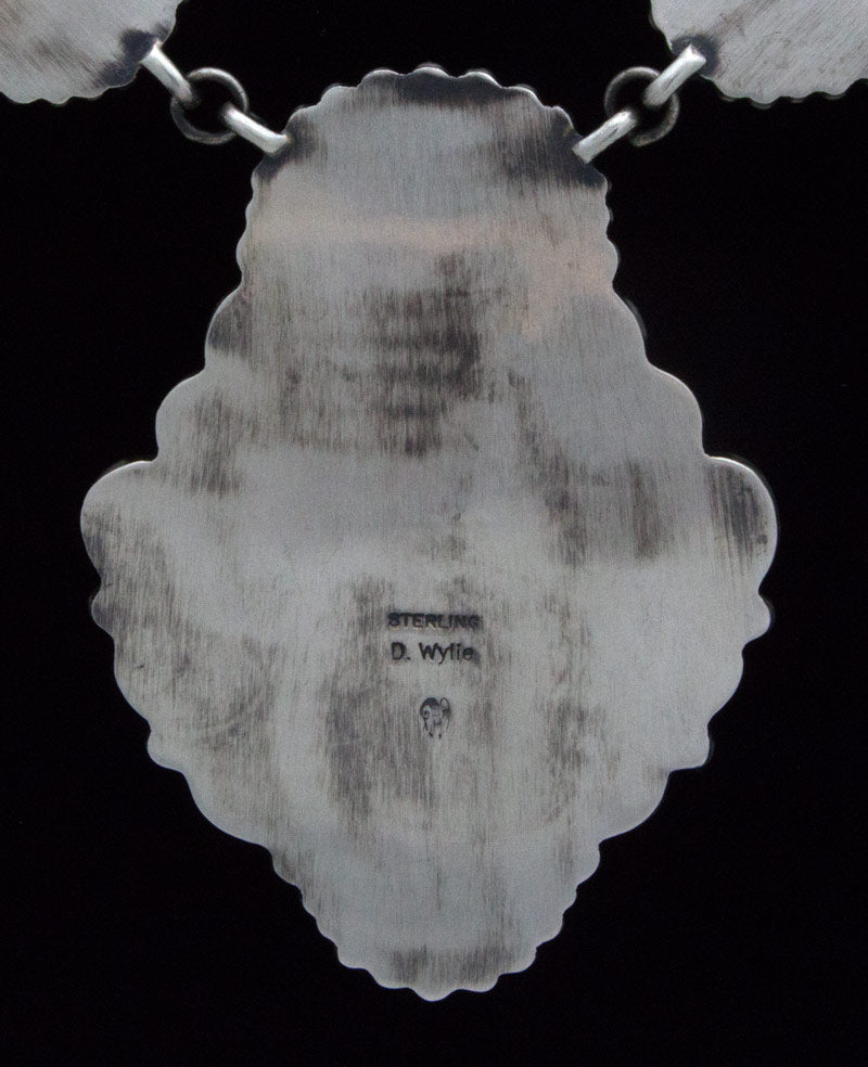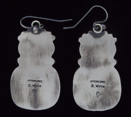 • Artist Hallmarks:   "D. Wylie" (hand stamped on back side of bottom hanging pendant and both earrings with artist's personal insignia)