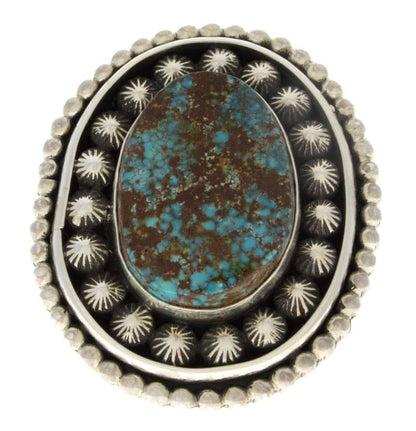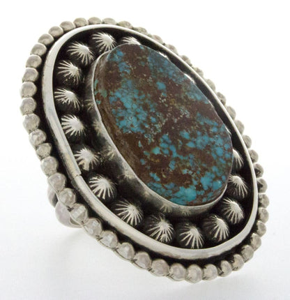 Größe 9,5 "Old Style" Sterlingsilber Statement-Ring mit einem natürlichen Royston-Turquoise-Stein. Meisterhaft handgefertigt und entworfen von der Navajo-Künstlerin READDA BEGAY.