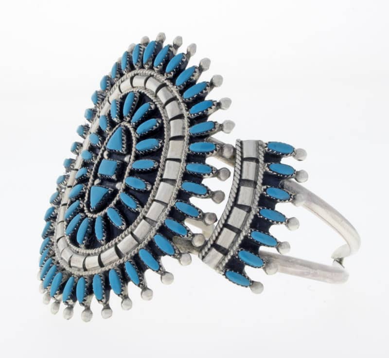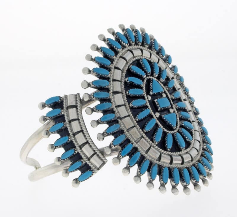 Schlafende Schönheit Türkis Nadelspitzen Cluster Armband Meisterhaft handgefertigt und entworfen von der Zuni-Künstlerin EVONNE HUSTITO.
