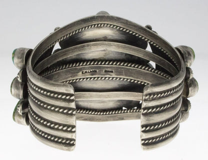 „Old Style“ Sterling Silberarmband, besetzt mit einem Cluster aus 17 Sonoran Gold Türkissteinen. Meisterhaft handgefertigt und entworfen von der Navajo-Künstlerin ELLA M. LINKIN.
