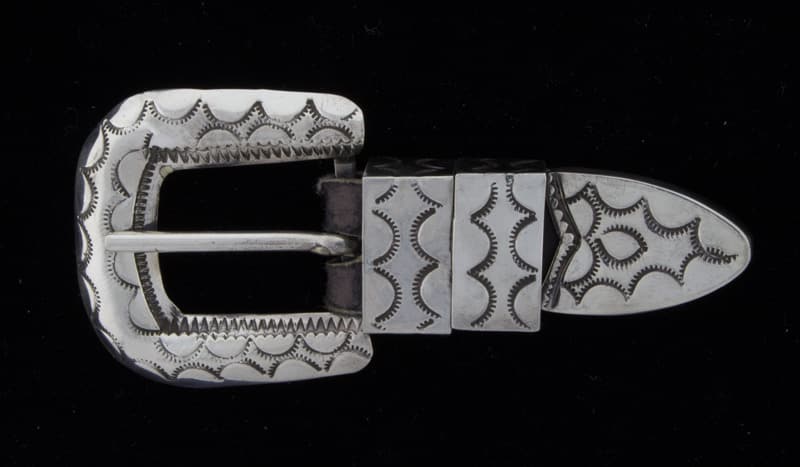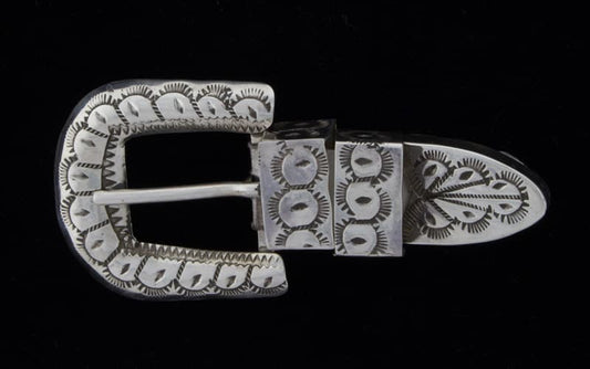 Sterling-Silber Ranger-Gürtelverschluss mit zwei Gürtelhaltern und Spitze. Meisterhaft handgefertigt und entworfen von der Navajo-Künstlerin NELLIE SILVER.