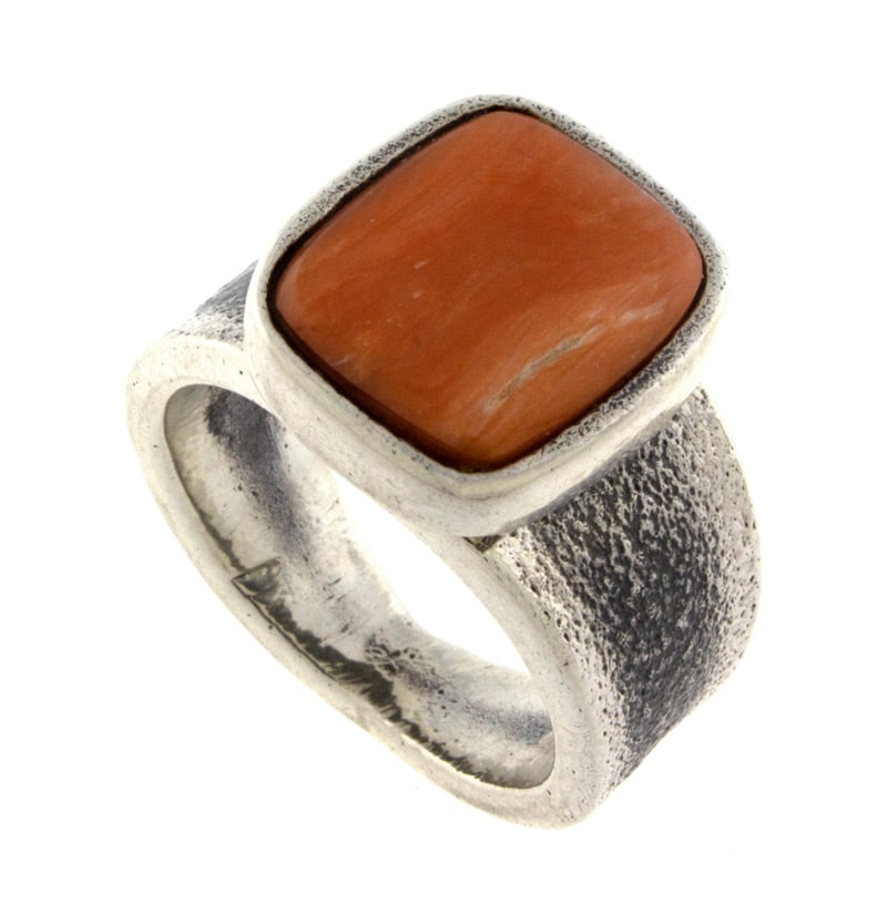 Tufa-Gussring mit natürlichem Lachs-Koralle