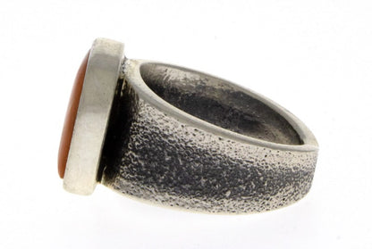 Größe 7 Tufa-Stein-Guss-Sterlingsilberring mit einem natürlichen Lachs-Korallenstein. Meisterhaft handgefertigt und entworfen von dem Navajo-Künstler ISIAH M. BEGAY.