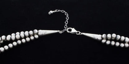 • Matériaux/technique du collier : perles en argent sterling satinées de 5 mm enfilées à la main ; chaîne réglable en argent sterling satiné avec fermoir crocodile