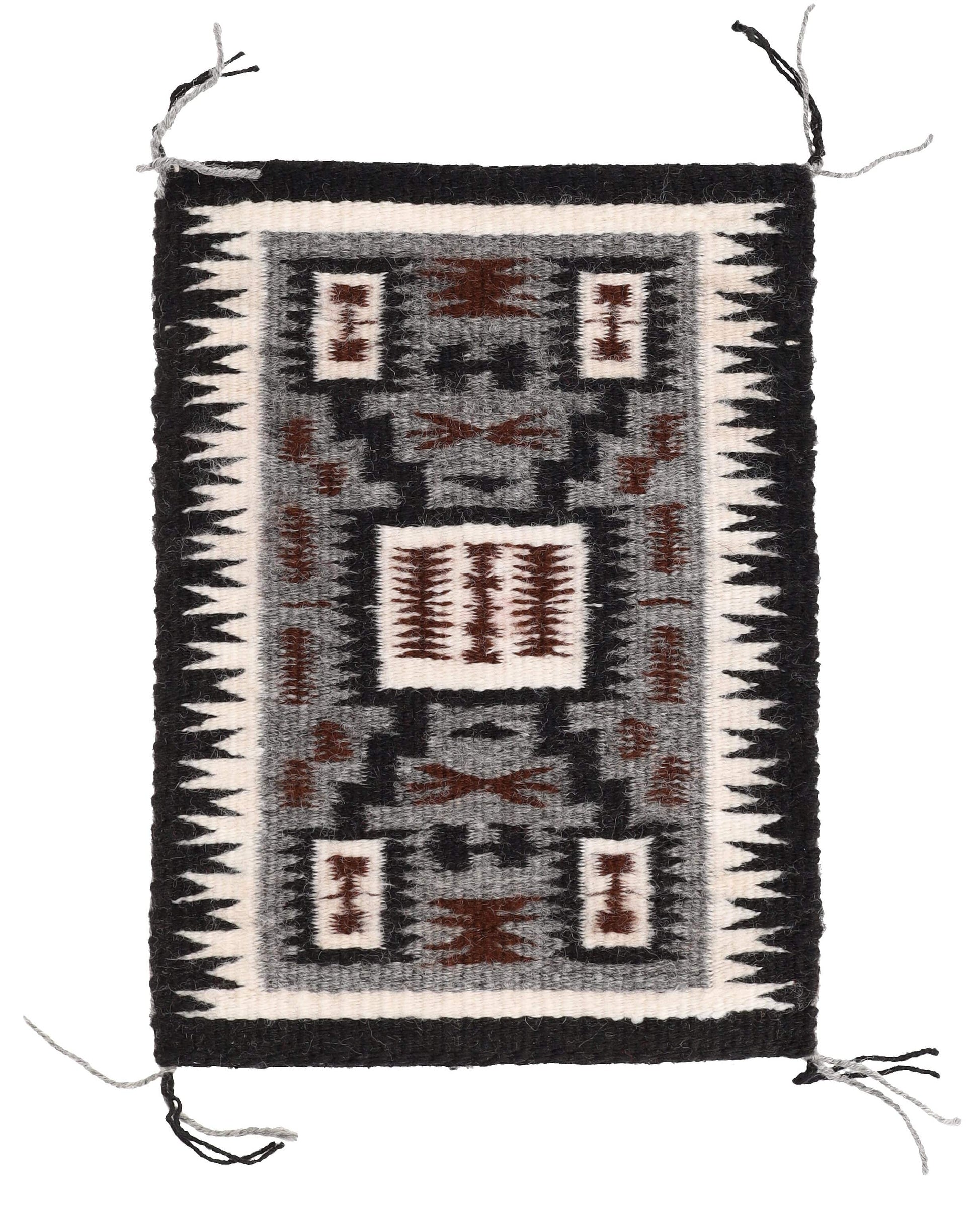 Tapis miniature 5″x7″ en laine 100 % motif tempête, habilement tissé à la main sur un métier à tisser traditionnel par la tisseuse navajo IRMA BEGAY.