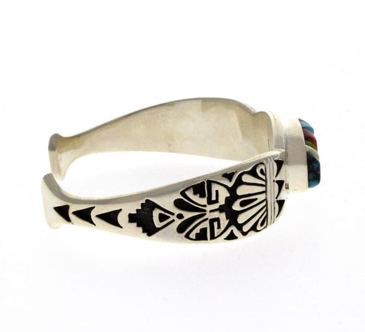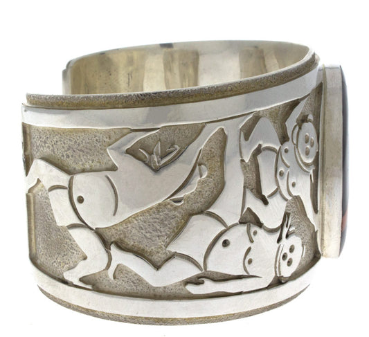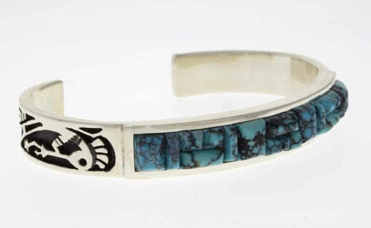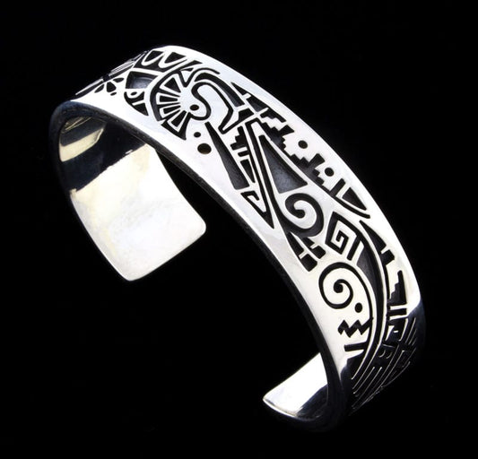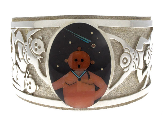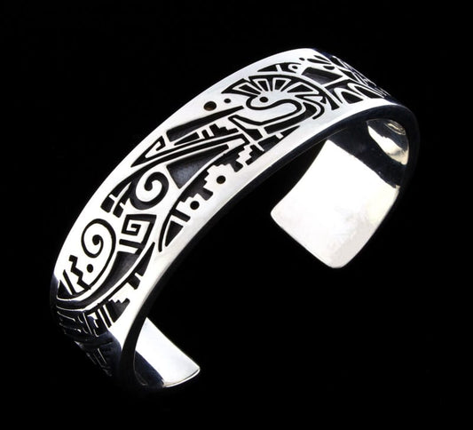 Bracciale con sovrapposizione di suonatore di flauto Kokopelli in argento sterling
