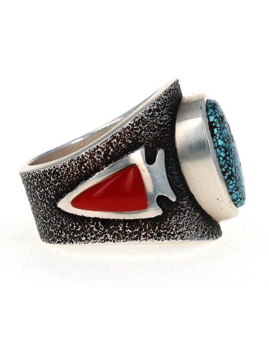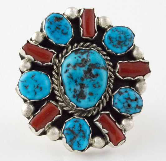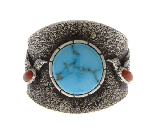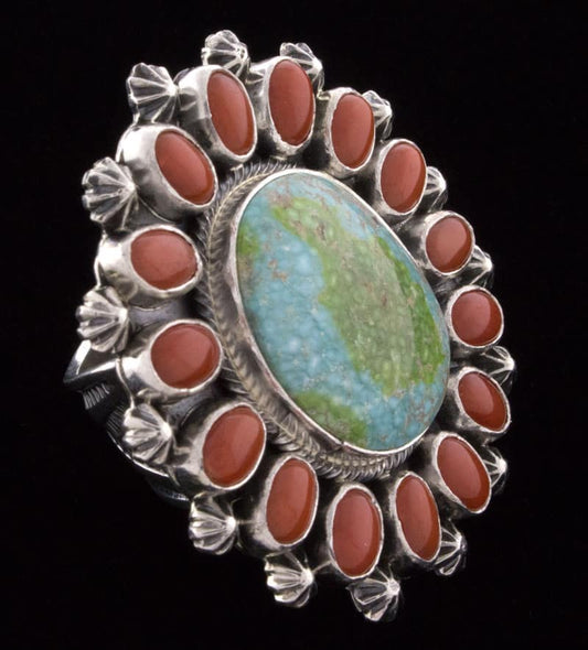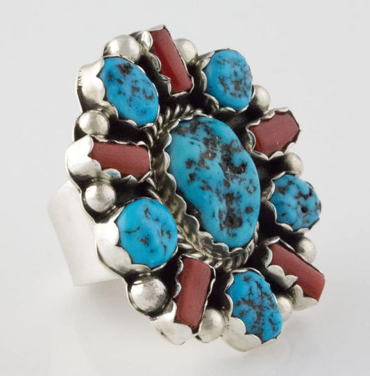 High Grade Natural Kingman Turquoise & Mediterranean Coral Ring