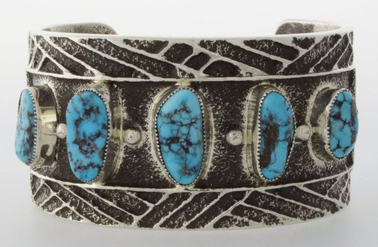 Bracciale a fila di 5 pietre in Tufa Stone con Turchese di Kingman