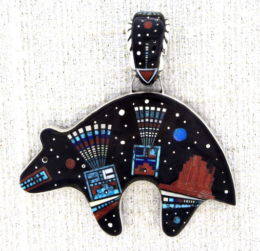 Ciondolo Orso Micro Inlay Multi-Colore Reversibile