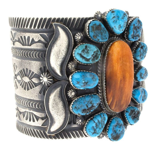 Bracciale in Turchese Kingman con Cluster di Corallo