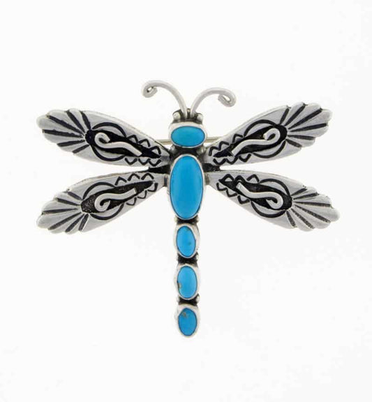 Spilla a forma di libellula con 5 pietre di turchese Sleeping Beauty