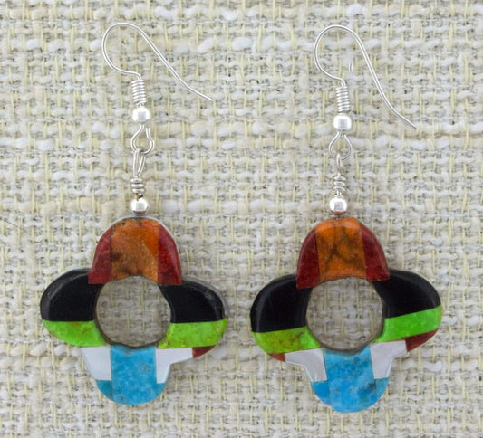 Orecchini a farfalla in pietra intagliata a mano con inlay multicolore