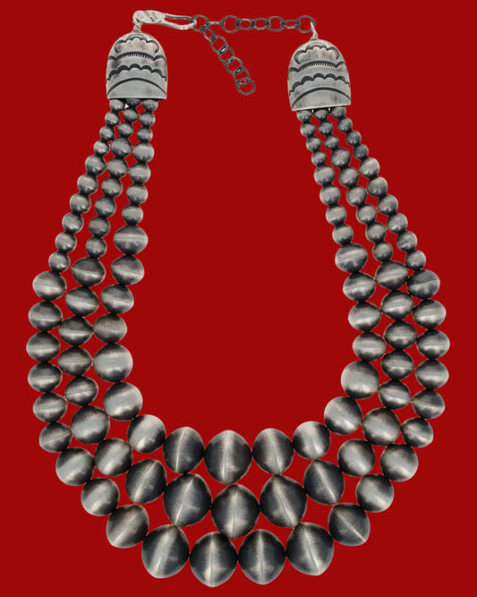 Collana di perline in argento sterling a 3 fili con pendente in turchese Birdseye Kingman naturale