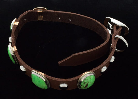 Why not share Navajo artistry with man’s best friend? Our sleek dog collars are made with genuine leather and hand-polished gemstones to have your canine friend looking their very best. Each piece is water resistant and made to last.